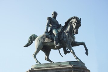 In het hart van het eiland staan twee standbeelden: Koning Albert I die zijn vader saluteert, als teken dat België Vlaanderen eert en zijn wortels respecteert.